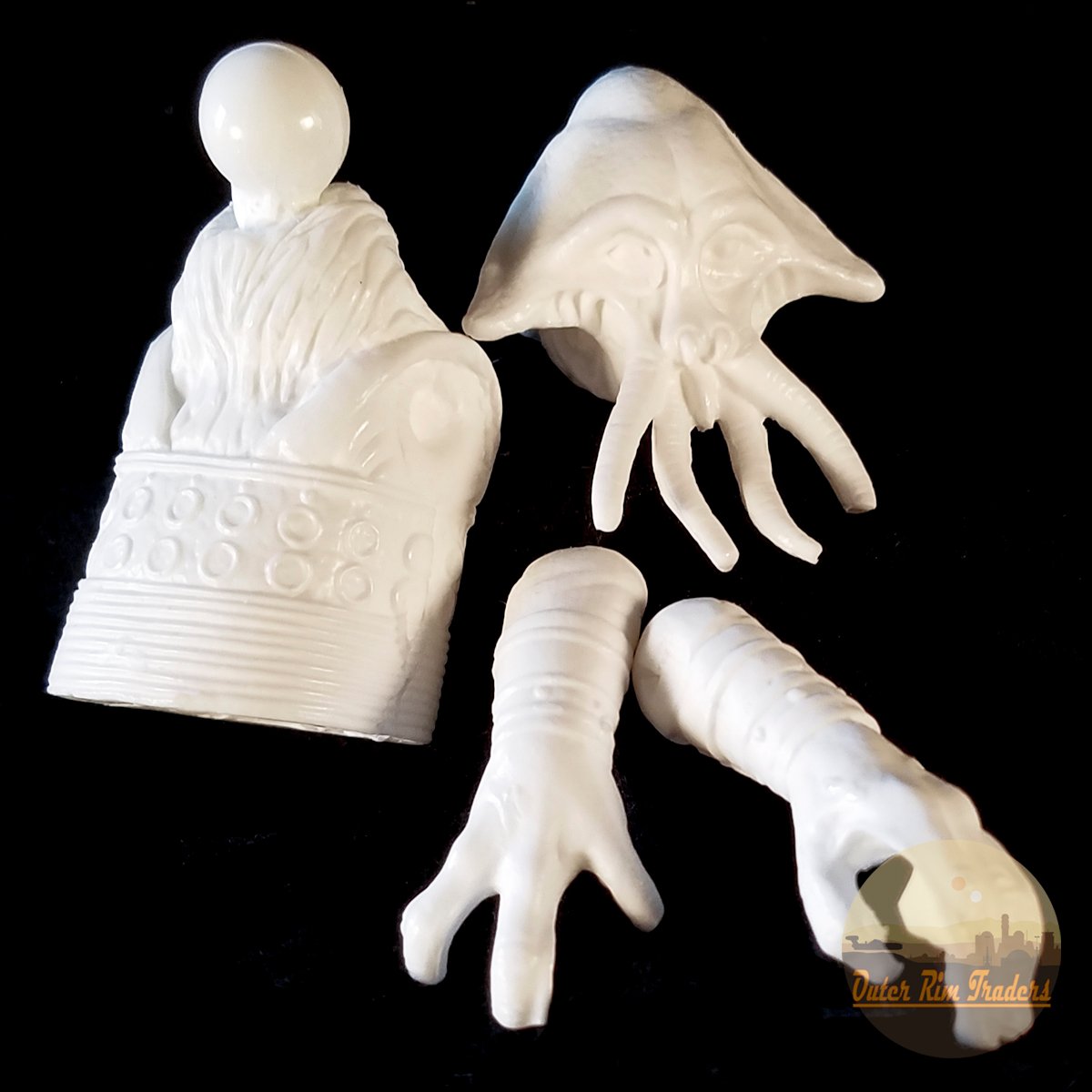 Build your own 1:12 palace dwelling Squid Head alien with this figure kit! This kit features a head, torso and two gangly forearms with hands. 1:12 scale parts all sold separately and made when ordered. Please allow to 2 weeks for parts to be made then shipped.